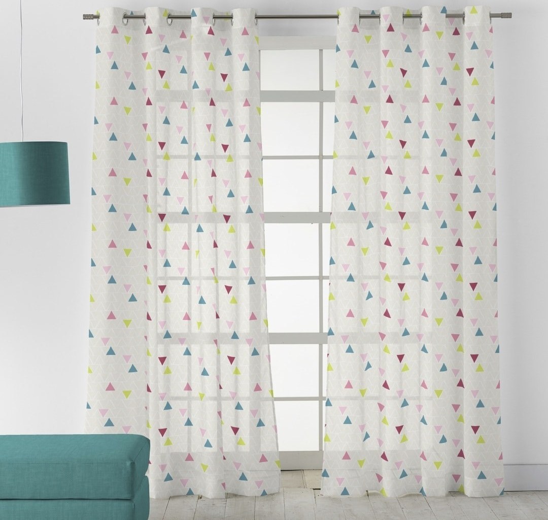 Visillo con diseño moderno de triángulos de colores.