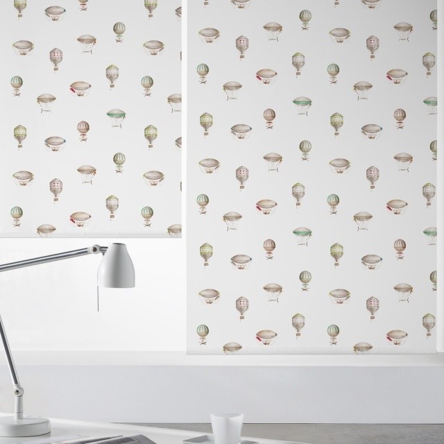 Globos y aeronaves que se combinan en este diseño atemporal y juvenil.